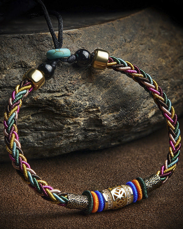 The Stupacrystal Lucky Bracelet brings the energy of good fortune and prosperity into your life. This handcrafted masterpiece is made with turquoise, plant-dyed threads (persimmon and tie-dye), and brass. Each turquoise bead symbolizes good luck and protection, and is carefully paired with eco-friendly dyed cotton threads, perfectly blending traditional and modern design. The sterling silver pendant adds an elegant touch and reinforces the bracelet's inherent energy of abundance and success.